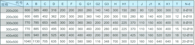说明:本表未列入200x300、300x400的技术参数