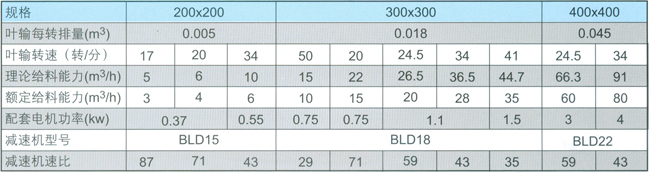 本产品在结构上分为A型和B型,A型为针轮减速机配链传动,其技术参数见表一;B型为直联式传动,技术参数见表二。产品规格以进料口口径划分,每种规格均给出几种给料能力,供选择;如有特殊要求,可代为设计制造。